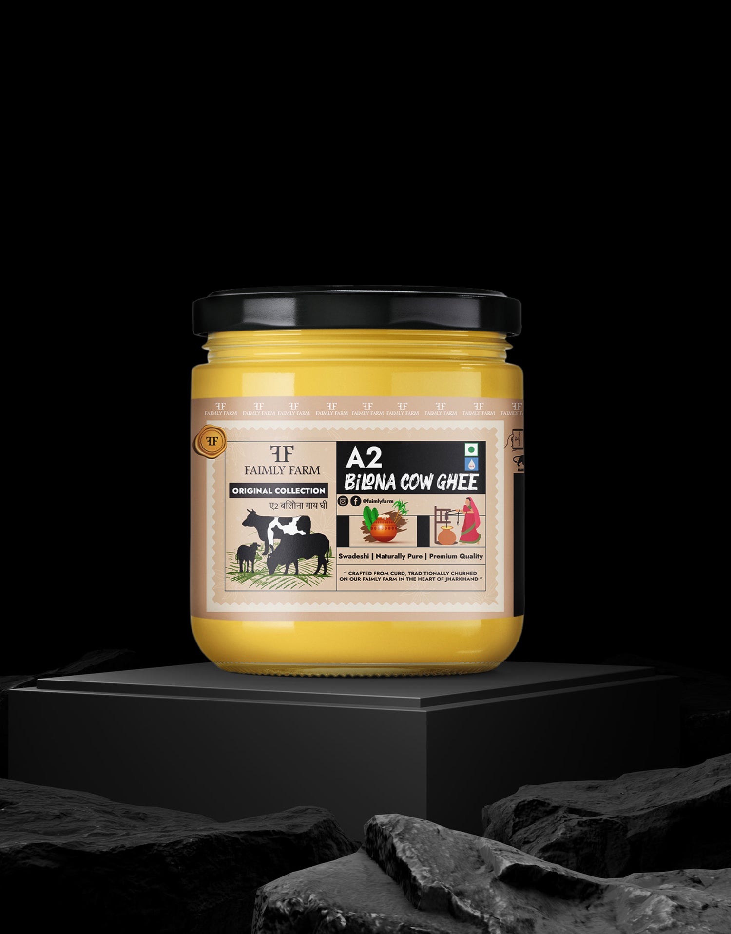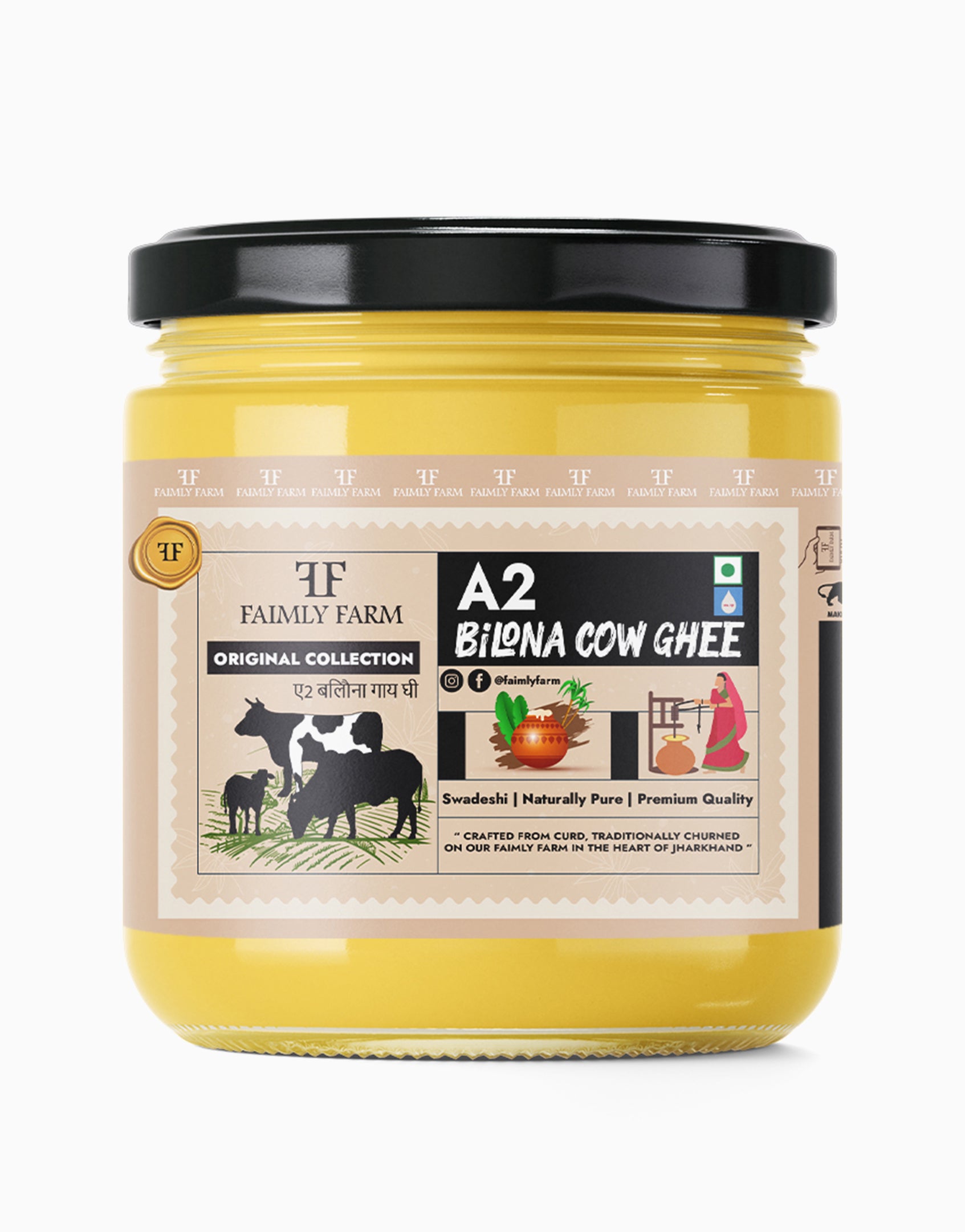 Faimly Farm (Orignal Collection) – Swadeshi | Naturally Pure | Premium Quality - Experience the purity of Swadeshi A2 Cow Ghee, traditionally handcrafted from the milk of indigenous Indian cows fed on natural diets. Prepared using the authentic Bilona churned method, this golden, aromatic ghee is made fresh in small batches without any chemicals or additives.