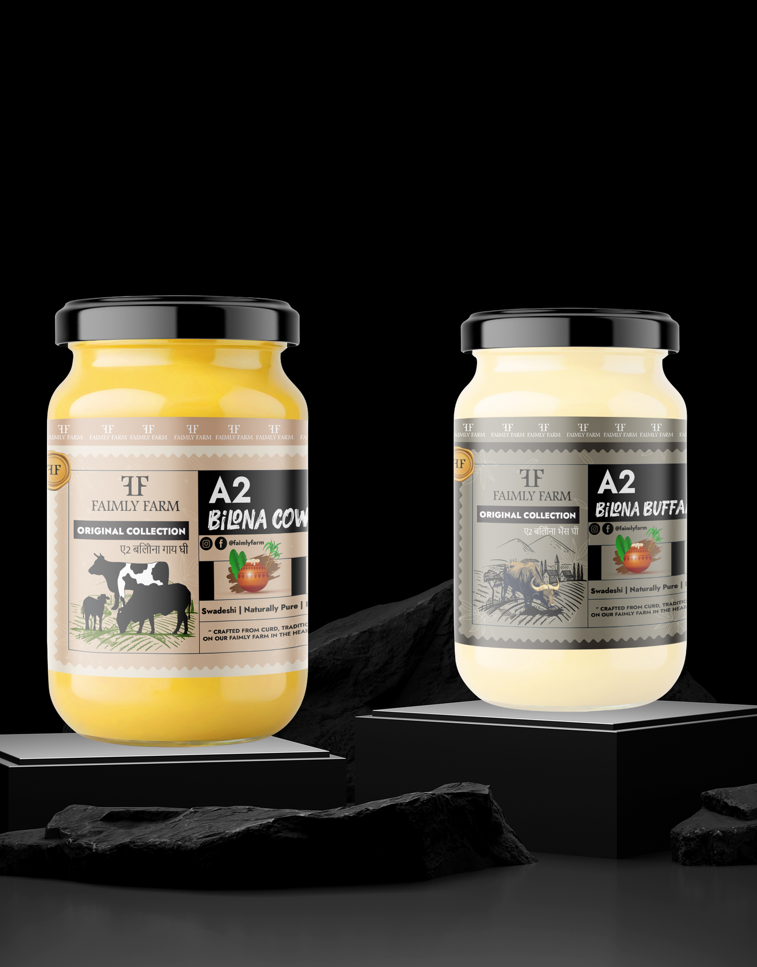 Faimly Farm (Orignal Collection A2 Ghee) – Swadeshi | Naturally Pure | Premium Quality - Experience India’s original goodness with our Swadeshi A2 Ghee Combo. This premium pack includes A2 Cow Ghee and A2 Buffalo Ghee, both crafted using the traditional Bilona method for unmatched purity, rich aroma, and authentic taste. Perfect for heritage cooking and everyday health.