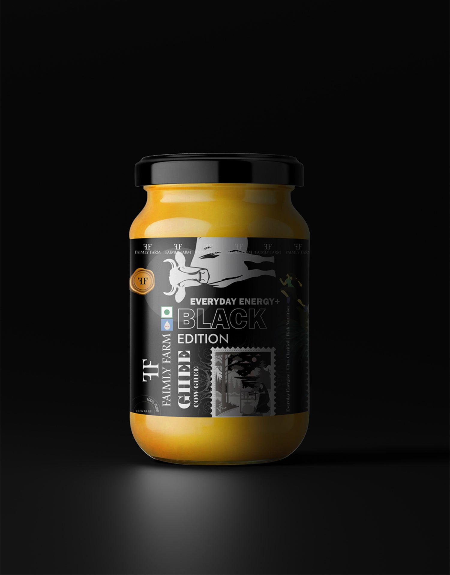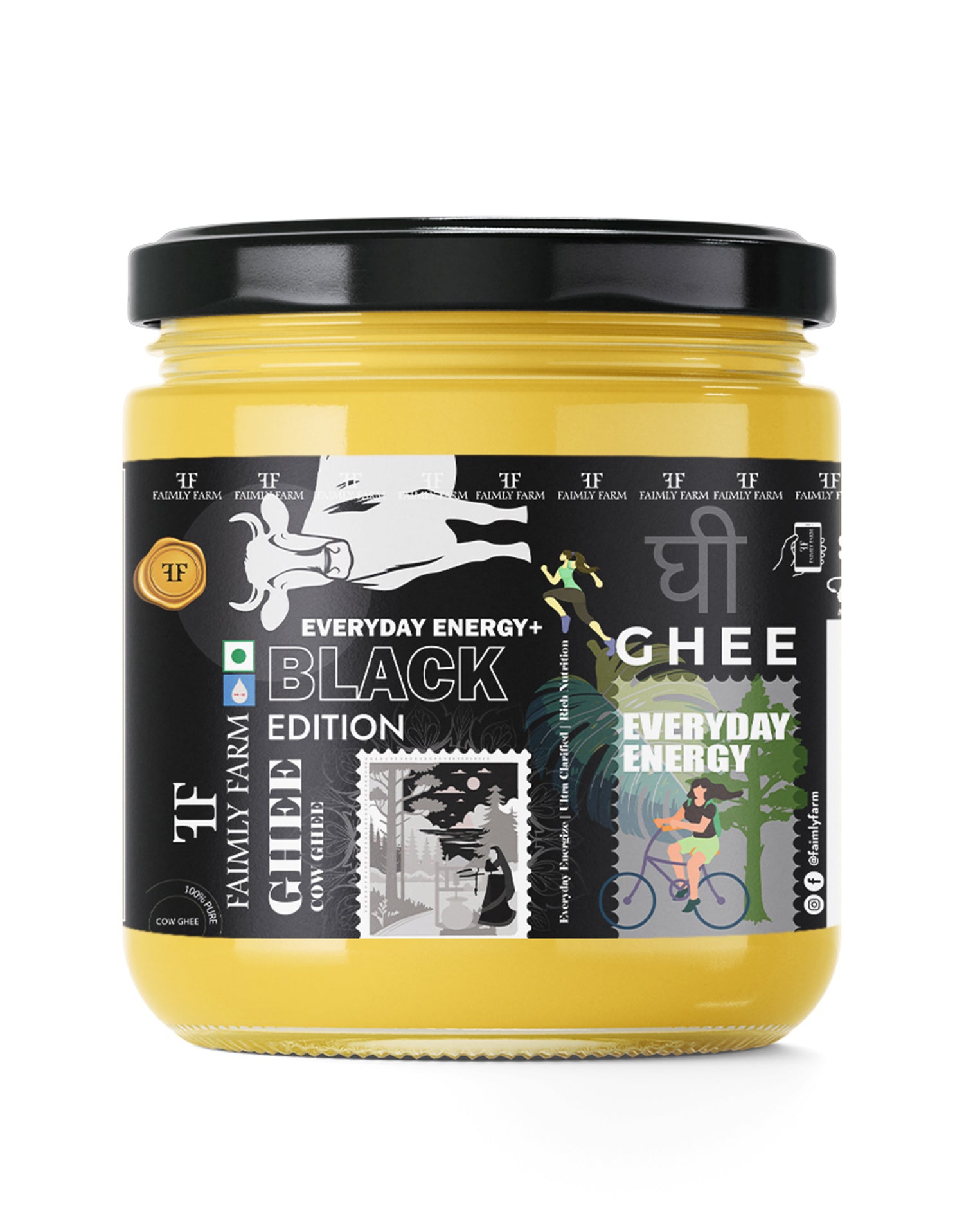Faimly Farm (Everyday Energy) – Everyday Energize | Ultra Clarified | Rich Nutrition - Black Edition is an ultra-clarified A2 cow ghee packed with natural goodness. Great for daily energy, deep frying, or keto meals. Smooth texture, high smoke point, and nutrient-rich. Your everyday power ghee.