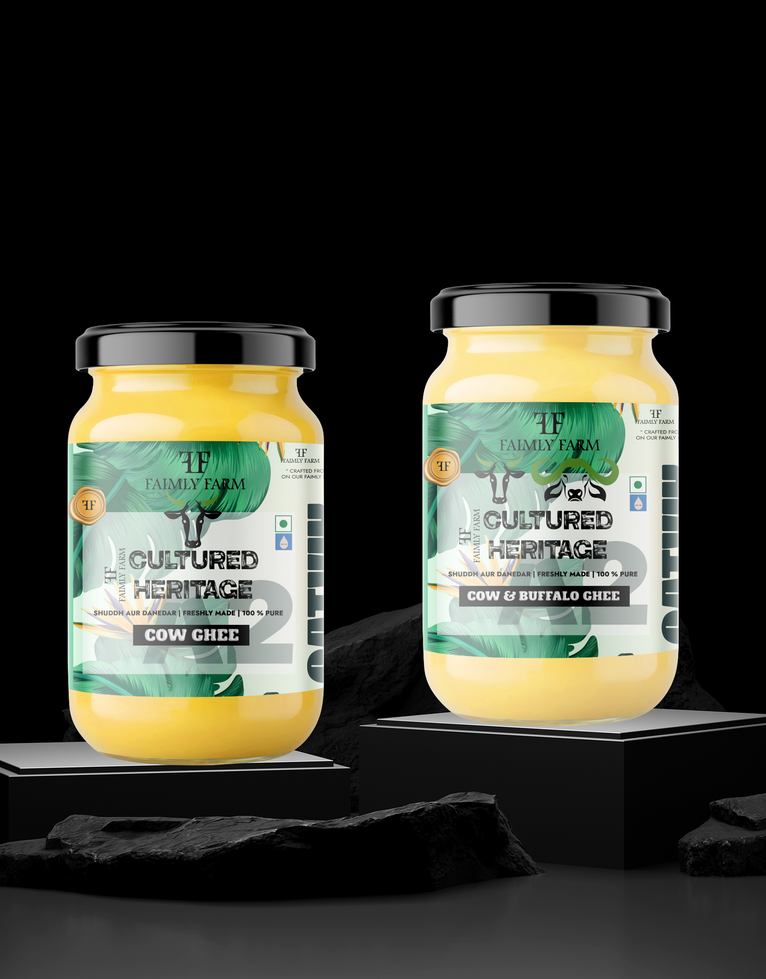 Faimly Farm (Cultural Heritage A2 Ghee) – Shuddh aur Danedar | Freshly Made | 100% Pure - Celebrate purity with Faimly Farm’s Cultural Heritage A2 Ghee Combo – a harmonious blend of Cow Ghee and Cow & Buffalo Ghee. 100% Pure, Shuddh aur Danedar, and Freshly Churned for your sacred rituals and satvik recipes. Shop now!