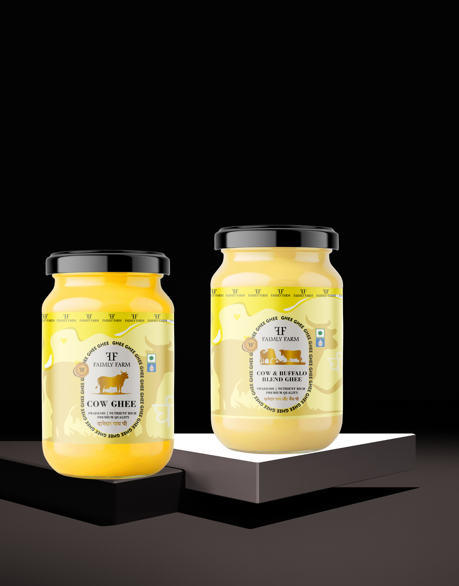 Danedar Cow Ghee Combo Pack from Faimly Farm is a Swadeshi, nutrient-rich, and premium-quality ghee collection featuring cow ghee and cow & buffalo blend ghee. Crafted from desi milk using traditional curd-culturing, hand-churning, and slow-cooking methods, it delivers a danedar (grainy) texture, rich aroma, and deep flavor.