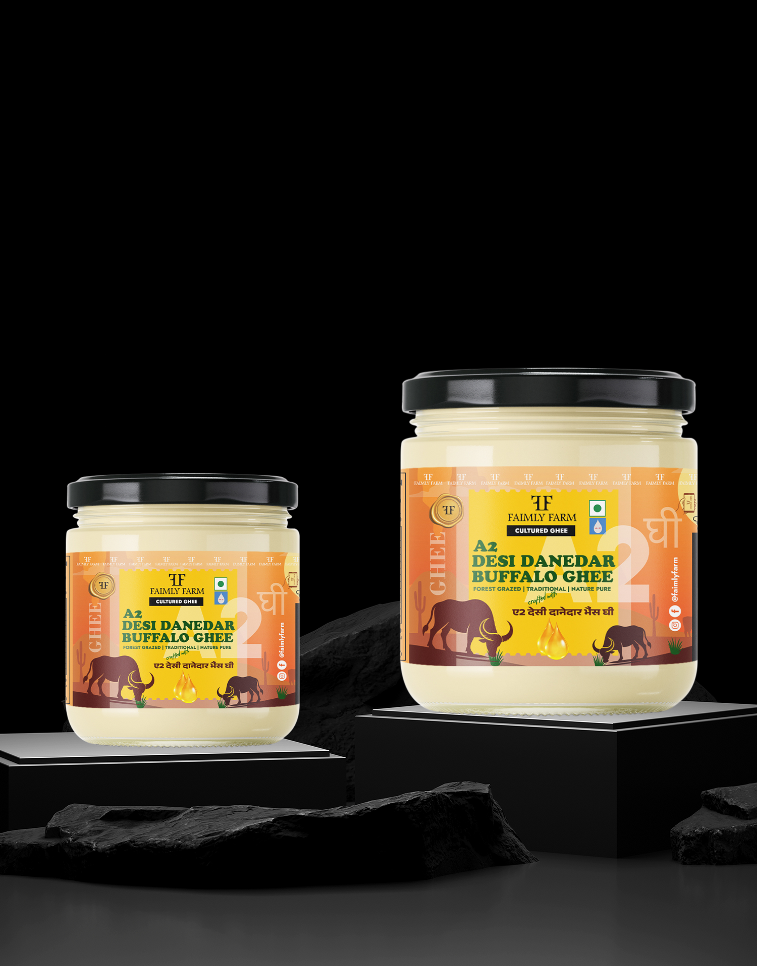 Faimly Farm (Desi Danedar A2 Ghee) – Forest Grazed | Crafted with Traditional | Natural Pure - Try Faimly Farm’s Desi Danedar A2 Buffalo Ghee – Forest Grazed and Traditionally Crafted to preserve its natural aroma, grainy danedar texture, and pure village taste. Made from 100% A2 milk. Buy premium Desi Buffalo Ghee online at Faimly Farm!