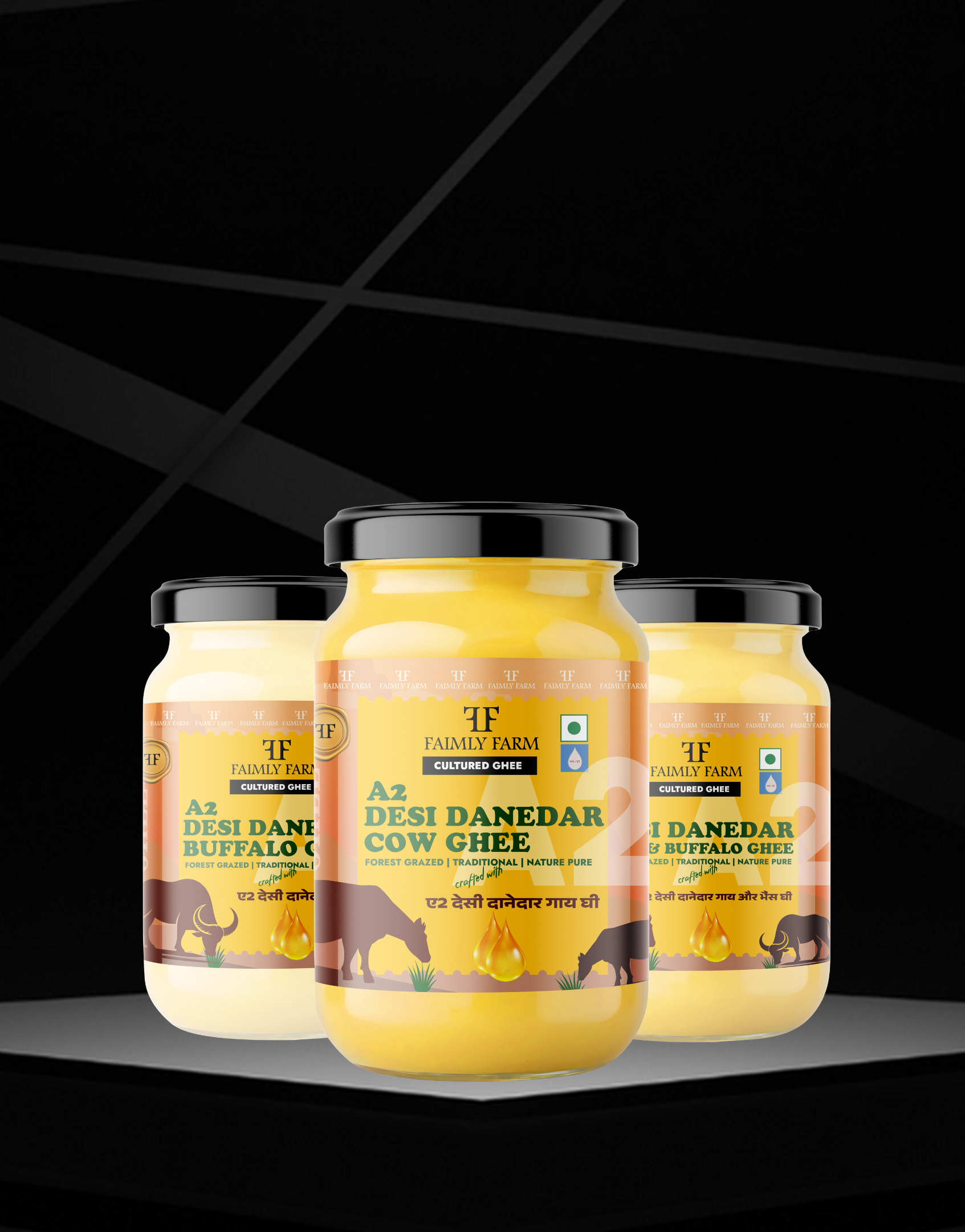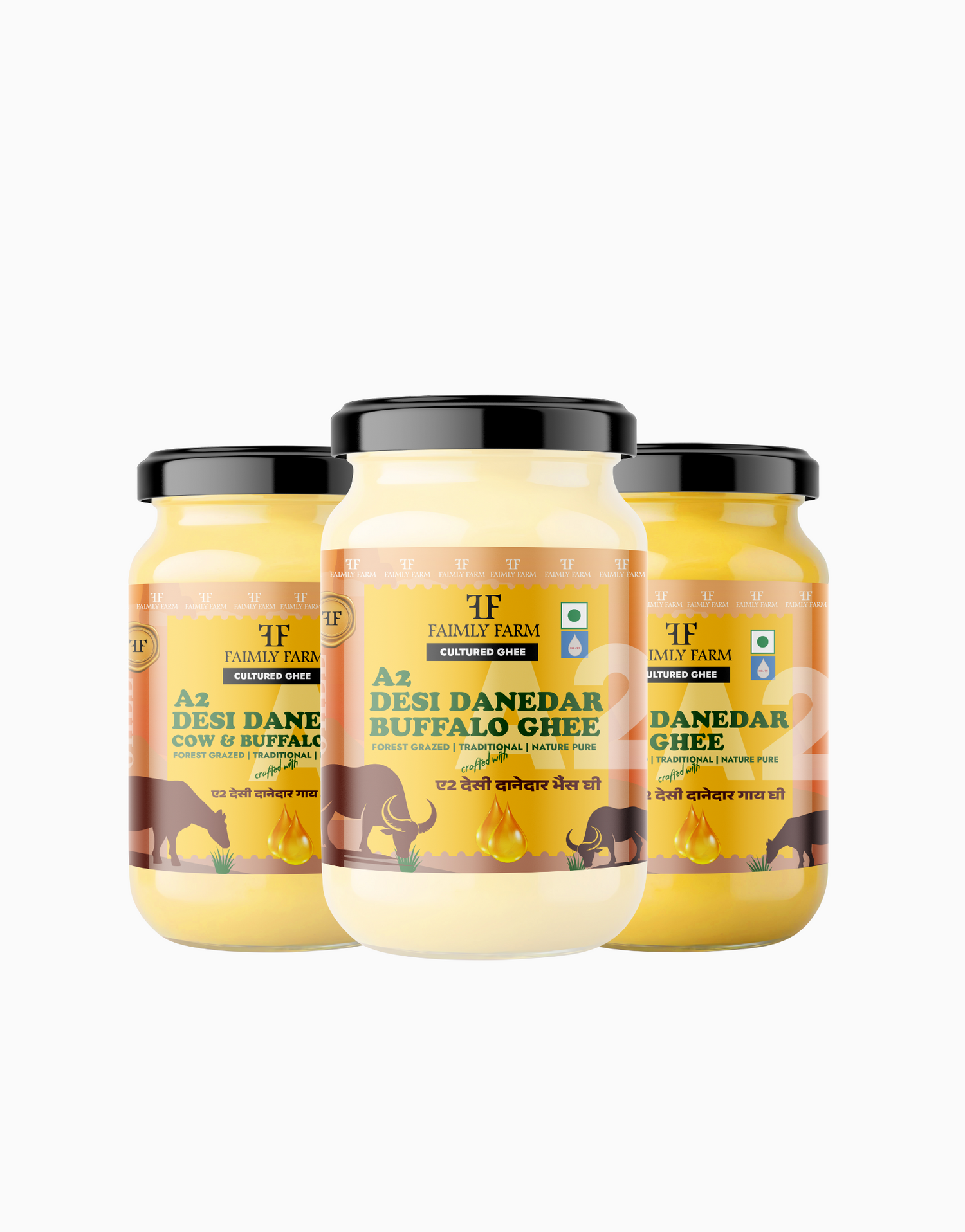 Faimly Farm (Desi Danedar A2 Ghee) – Forest Grazed | Crafted with Traditional | Natural Pure - Enjoy Faimly Farm’s Desi Danedar A2 Ghee Trio – a blend of Cow, Buffalo, and Cow & Buffalo Ghee that’s Forest Grazed, Traditionally Crafted, and Naturally Pure. Rich in desi flavor with a signature grainy texture. Buy authentic A2 Desi Ghee online at Faimly Farm!
