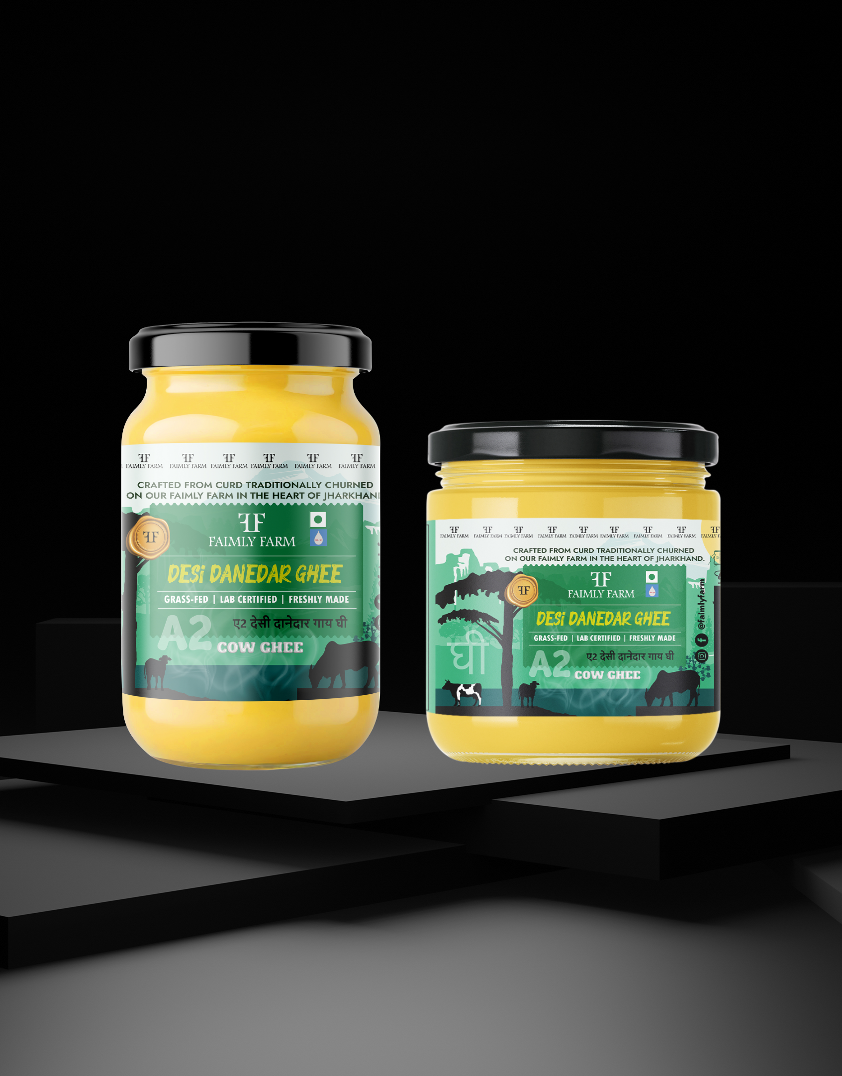 Faimly Farm (Farm Fresh A2 Ghee ) – Premium | Slow Cooked | Ancient Bilona Churned - Enjoy the wholesome purity of Faimly Farm’s Farm Fresh A2 Cow Ghee – Bilona Churned, Slow Cooked, and Premium in every spoon. Made from 100% A2 milk for a rich traditional experience. Buy online at Faimly Farm!