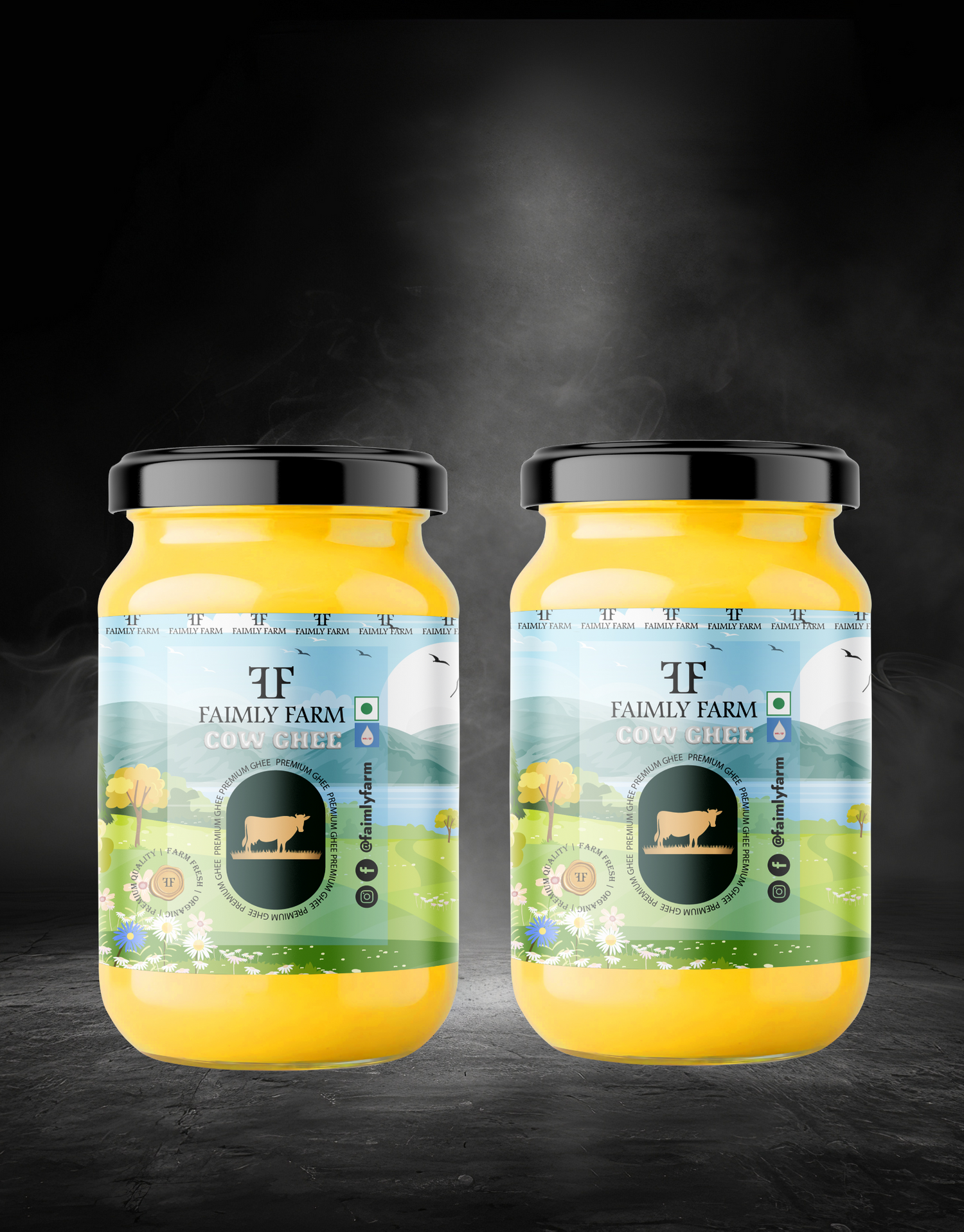 Farm Fresh Cow Ghee Twin Pack from Faimly Farm is a freshly crafted, premium-quality ghee made from organic, farm-fresh desi cow milk. Prepared using traditional curd-culturing, hand-churning, and slow-cooking methods, it retains a rich, danedar texture, natural aroma, and nutrient-packed goodness.