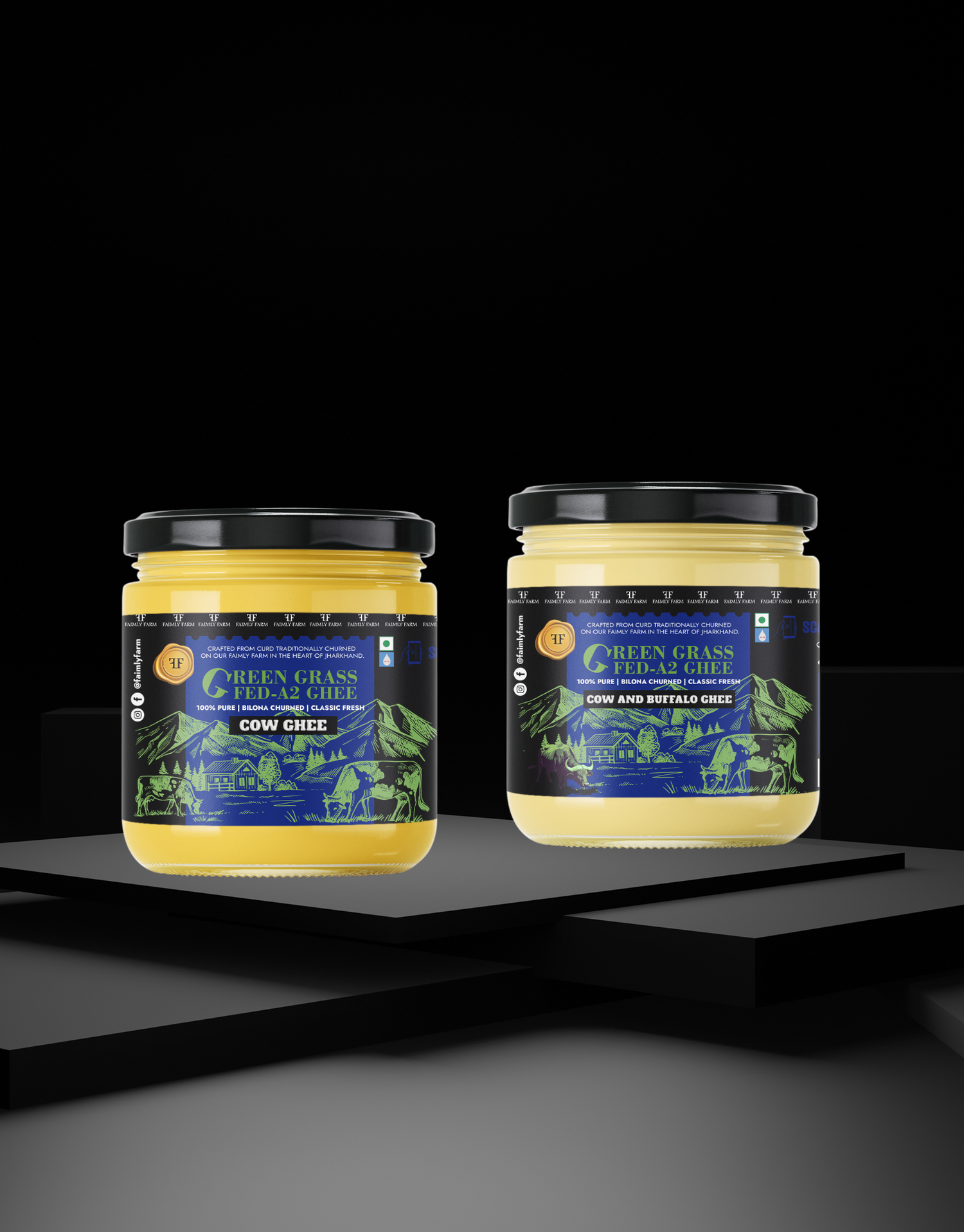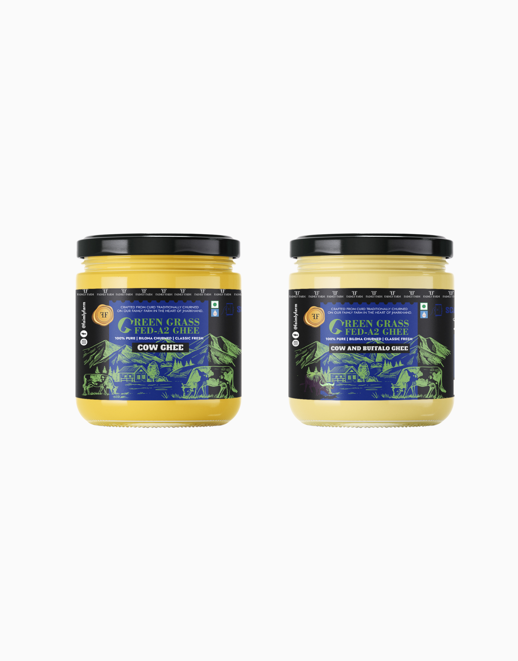 Faimly Farm (Green Grass-Fed A2 Ghee) – 100% Pure | Bilona Churned | Classic Fresh - Enjoy double freshness with Faimly Farm’s Green Grass-Fed A2 Ghee Combo – Cow Ghee and Cow & Buffalo Ghee, Bilona Churned from green pastures. Rich in flavor, immunity-boosting fats, and digestive benefits. Order online today!