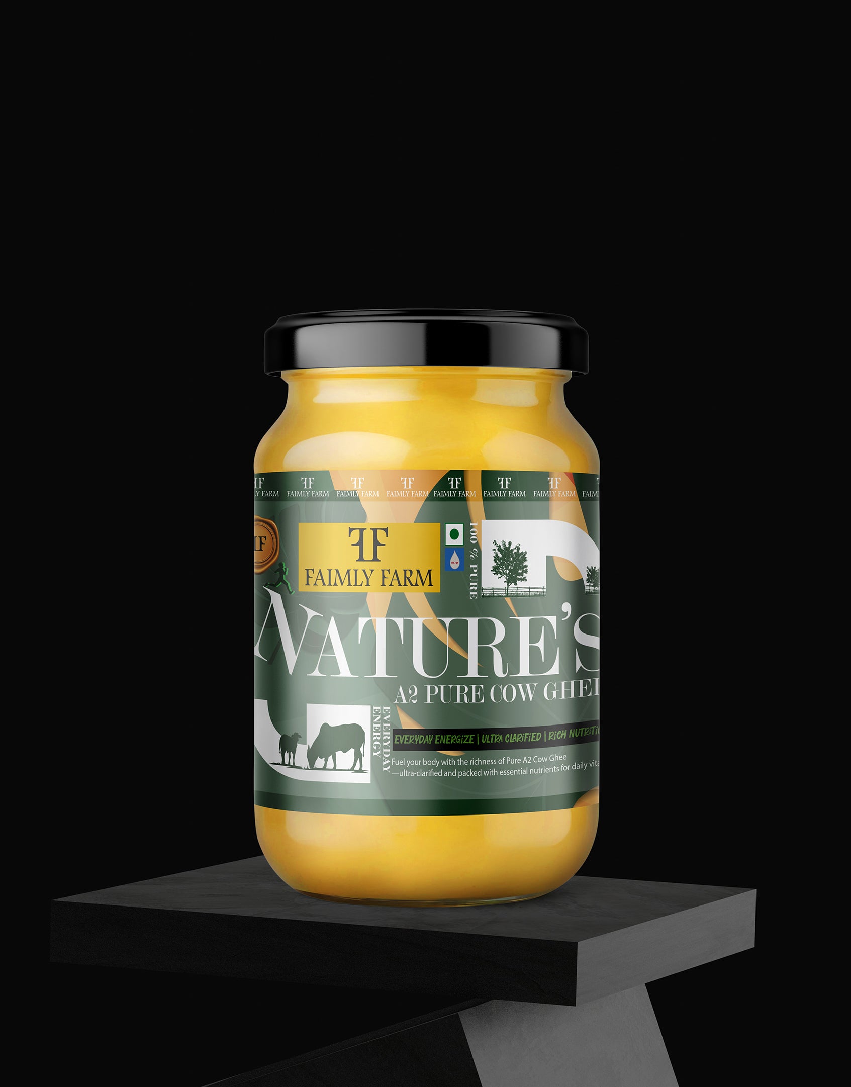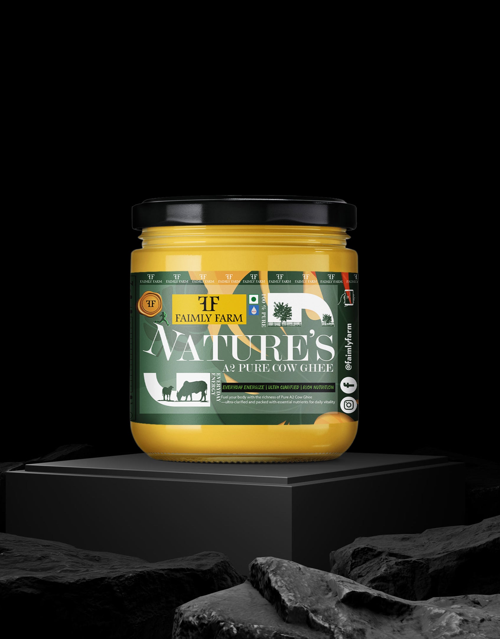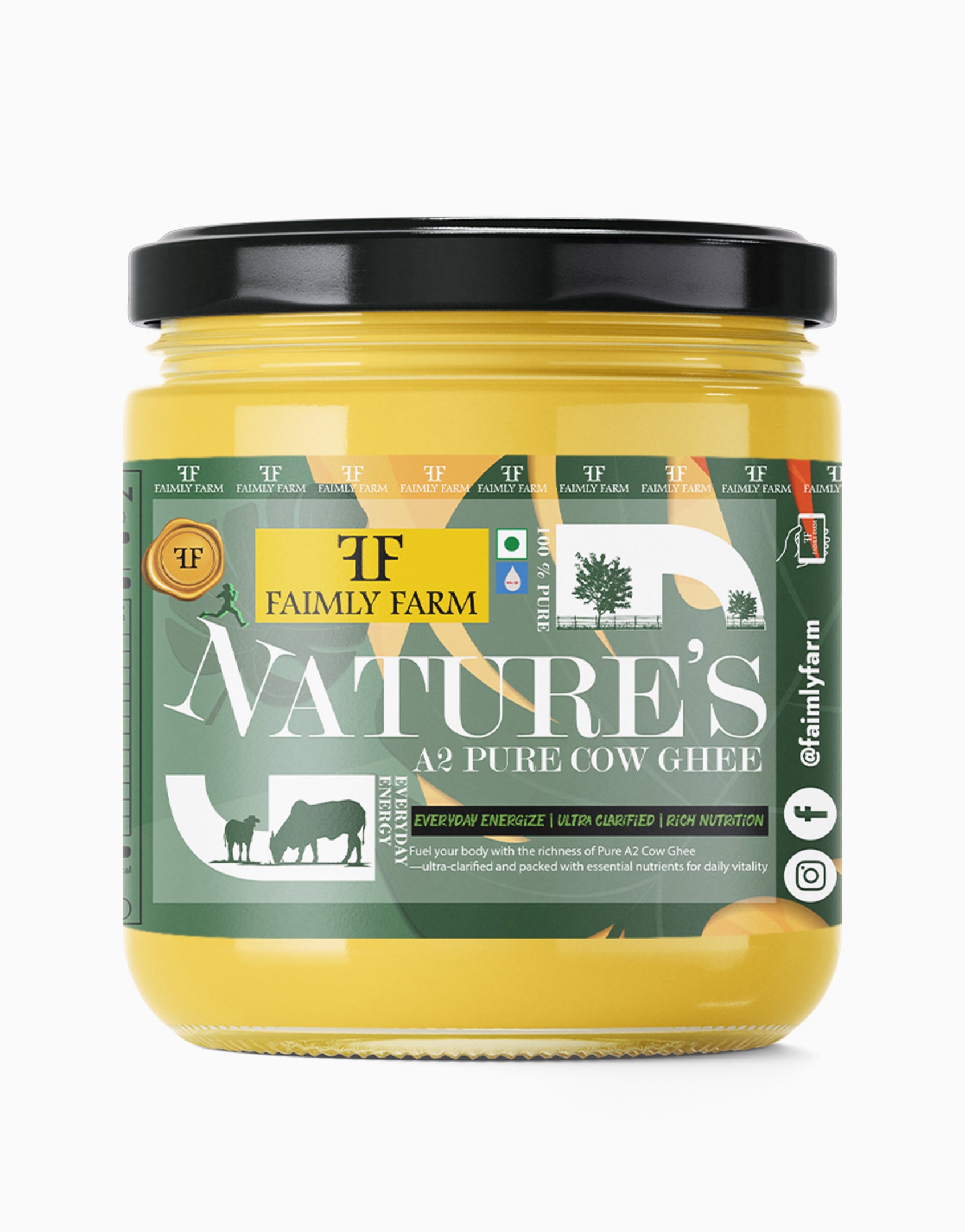 Faimly Farm (Nature's Pure A2 Collection) – Everyday Energize | Ultra Clarified | Rich Nutrition - Experience the goodness of Nature’s Pure A2 Cow Ghee, crafted from premium A2 cow milk and ultra-clarified for unmatched purity. Rich in fat-soluble vitamins A, D, E, and K, this nutrient-dense ghee fuels your day with natural energy, supports digestion, and boosts immunity.