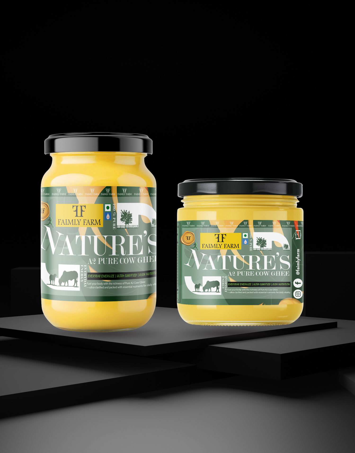 Faimly Farm (Nature's Pure A2 Collection) – Everyday Energize | Ultra Clarified | Rich Nutrition - Shop Faimly Farm’s Nature's Pure A2 Collection – Ultra Clarified Cow Ghee combo delivering Everyday Energy and Rich Nutrition. Made from ethically sourced 100% pure A2 milk, perfect for healthy cooking and daily use. Buy premium A2 Cow Ghee online now!