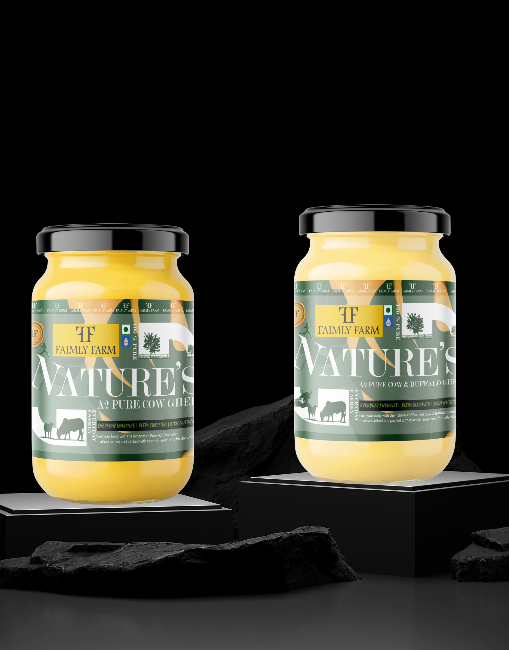 Faimly Farm (Nature's Pure A2 Collection) – Everyday Energize | Ultra Clarified | Rich Nutrition - Discover Faimly Farm's Nature's Pure A2 Collection – a premium combo of Ultra Clarified, nutrient-rich A2 Cow & Buffalo Ghee and Cow Ghee. Fuel your day with pure, ethically sourced ghee packed with everyday energy and rich nutrition. Buy 100% pure A2 ghee online now!