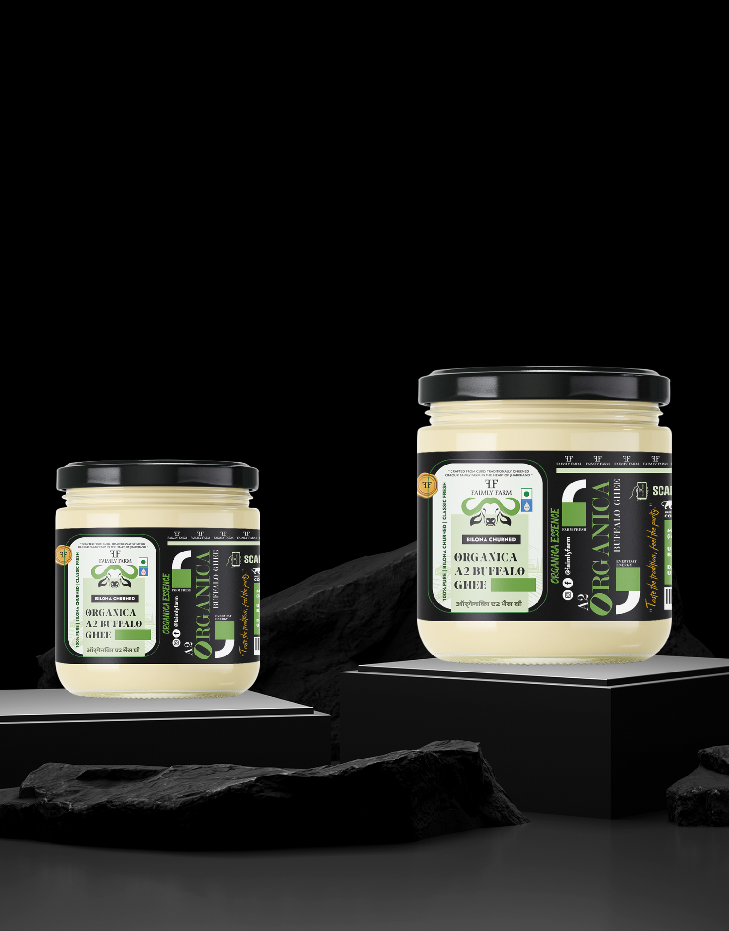 Faimly Farm (Organica Essence) – 100% Pure | Bilona Churned | Classic Fresh - Experience the purity of Organica Essence Combo Ghee by Faimly Farm – a wholesome blend of A2 Cow and Buffalo Ghee, handcrafted using the Bilona method with 100% pure milk. Rich in nutrients, fresh in taste, and perfect for daily cooking, energy, and traditional wellness.