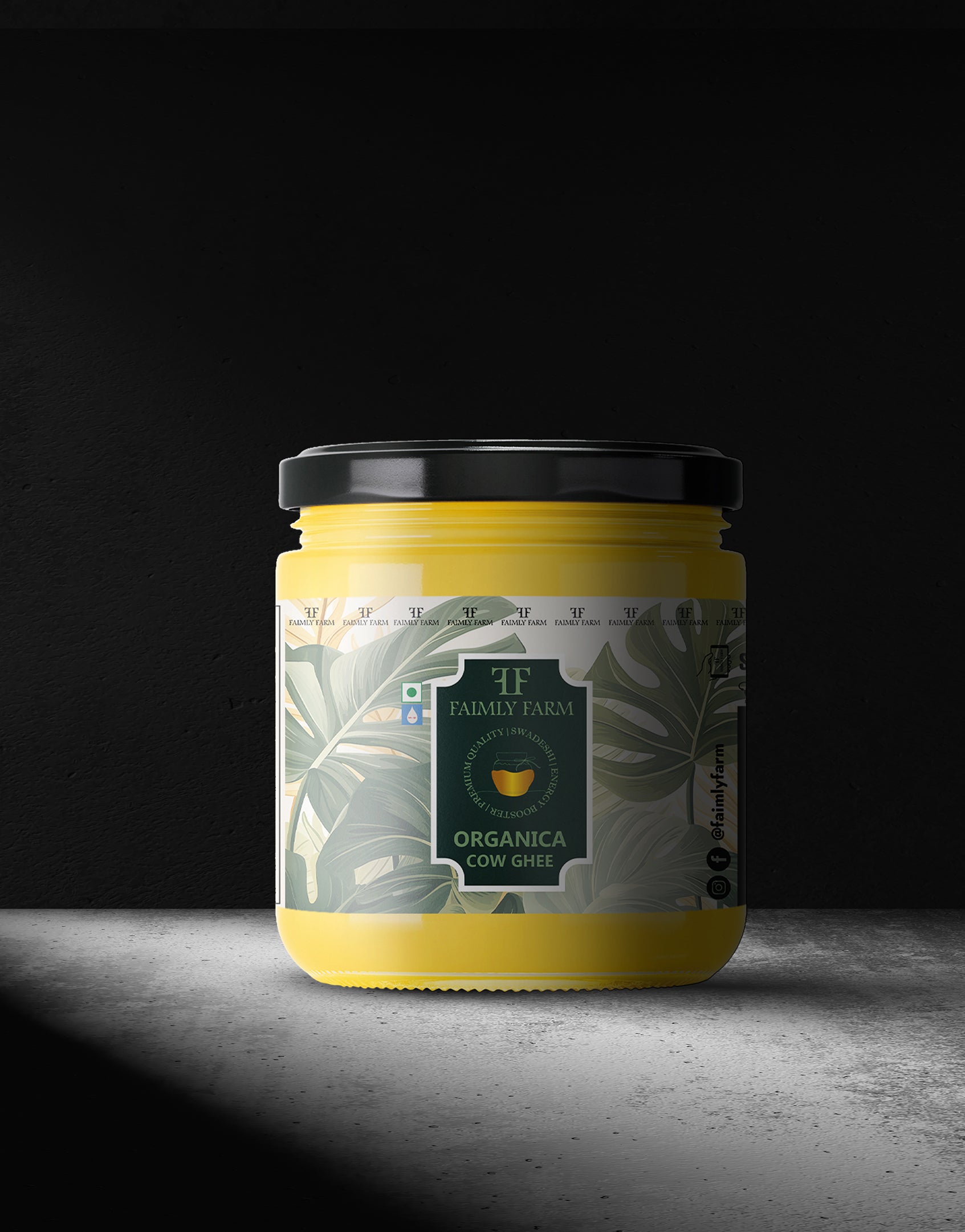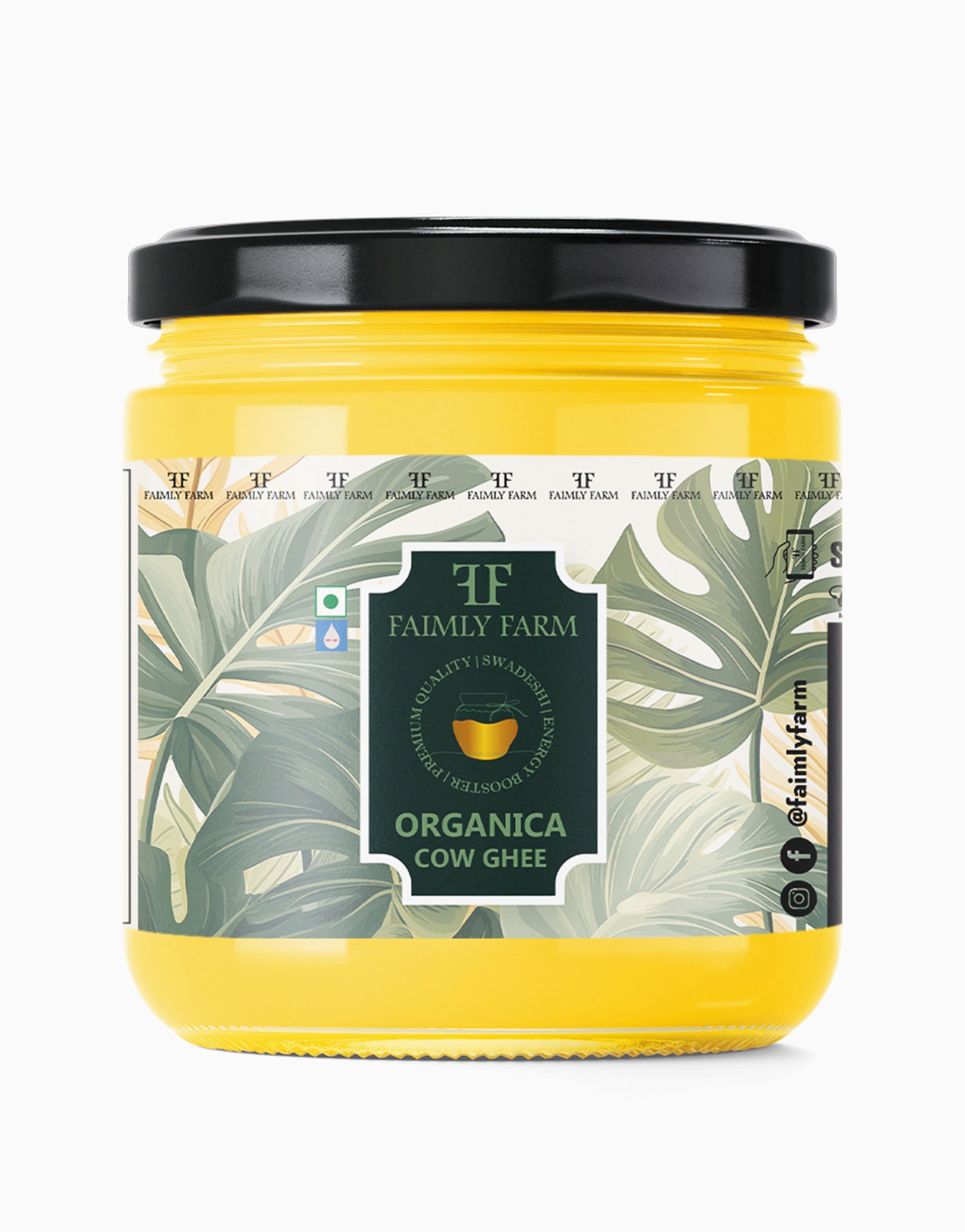 Organica Cow Ghee from Faimly Farm is a premium Swadeshi ghee made from pure desi cow milk using traditional methods. Light and easily digestible, it is rich in healthy fats that support energy, immunity, and daily nourishment.