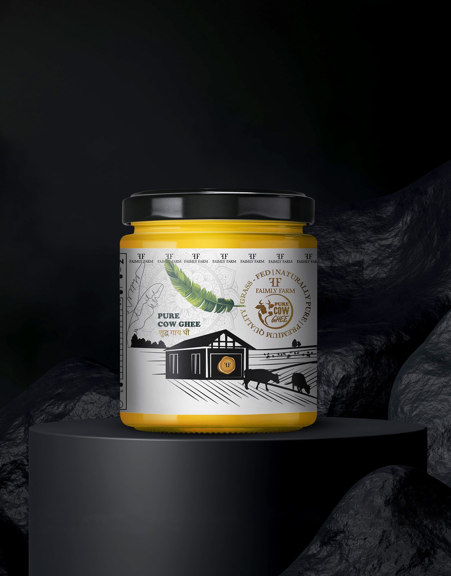 Pure Cow Ghee by Faimly Farm is made from grass-fed Indian cow milk, offering 100% natural purity and premium quality. Prepared using a slow-cooked, traditional process, it retains its golden color, rich texture, and authentic aroma.